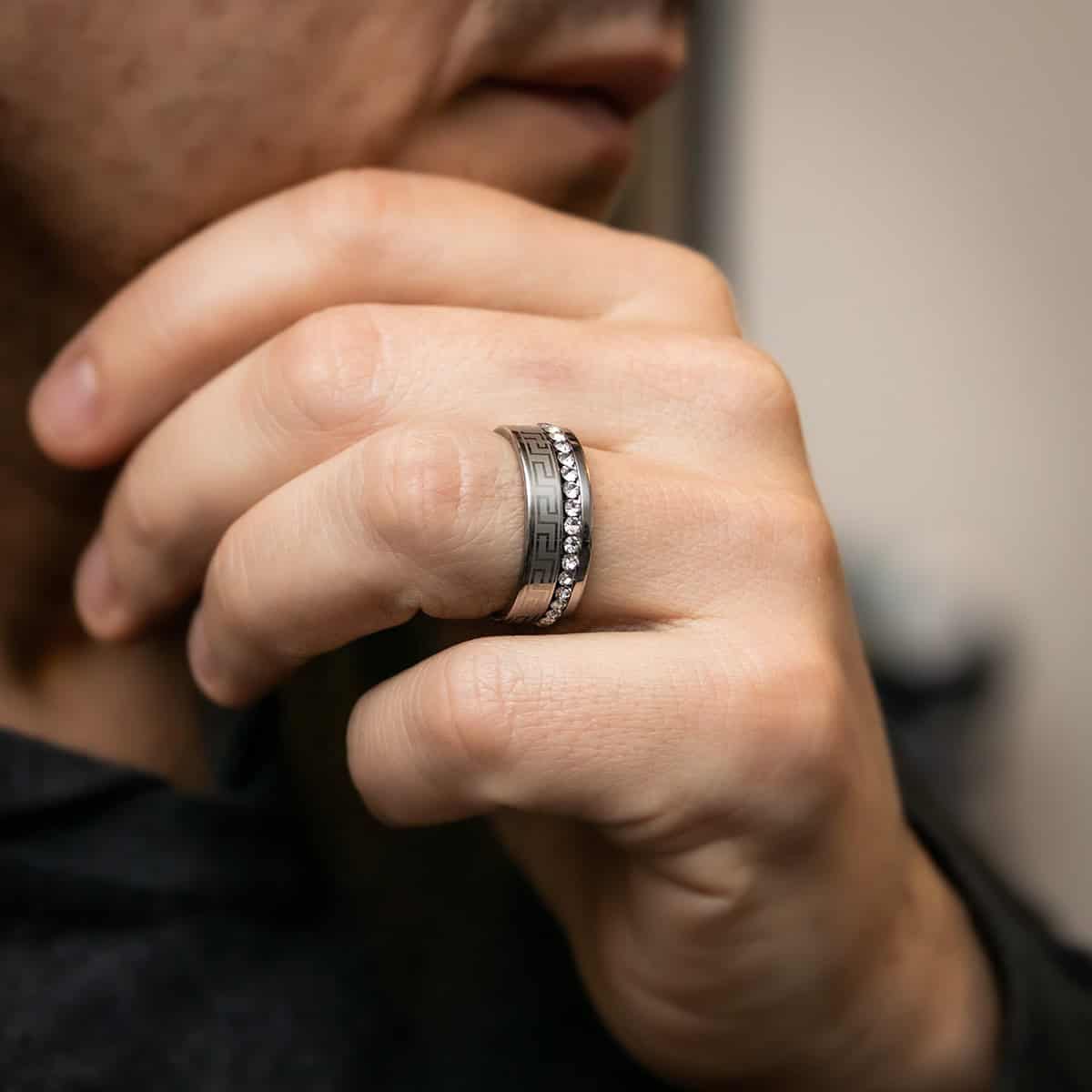 – La bague anneau pour homme EAQUE, livrée avec sa pochette cadeau, est une superbe bague aux incroyables finitions. Cette bague homme est travaillée avec beaucoup de finesse. Des strass en Oxyde de Zirconium ornent cet anneau avec beaucoup de delicatesse. C’est une bague homme à un prix tout doux pour cette qualité de travail