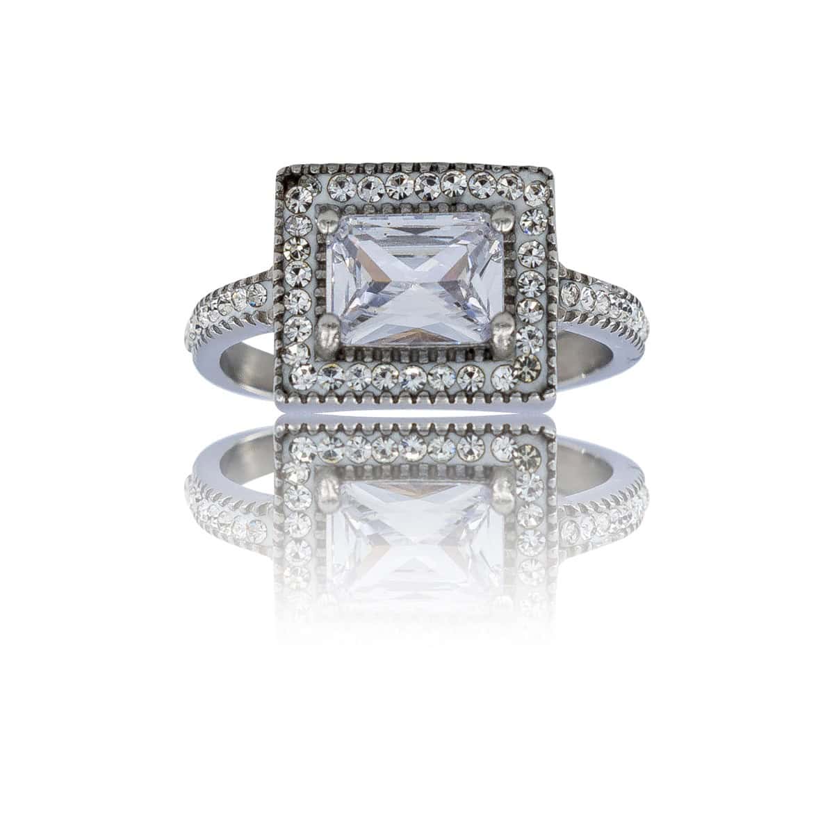 Bague Femme Acier Ornée avec Zirconium