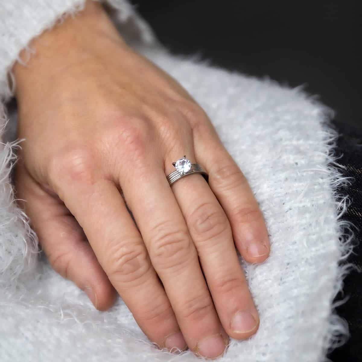 La bague acier avec solitaire