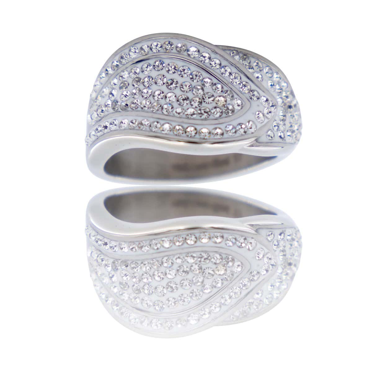 Bague femme avec strass oxydes de zirconium – La taille indiquée est le périmètre (le tour) de votre doigt en millimètre (mm) – Marque Française – Made in RPC – Matière : Métal – Largeur : 12mm – Livrée avec pochette cadeau