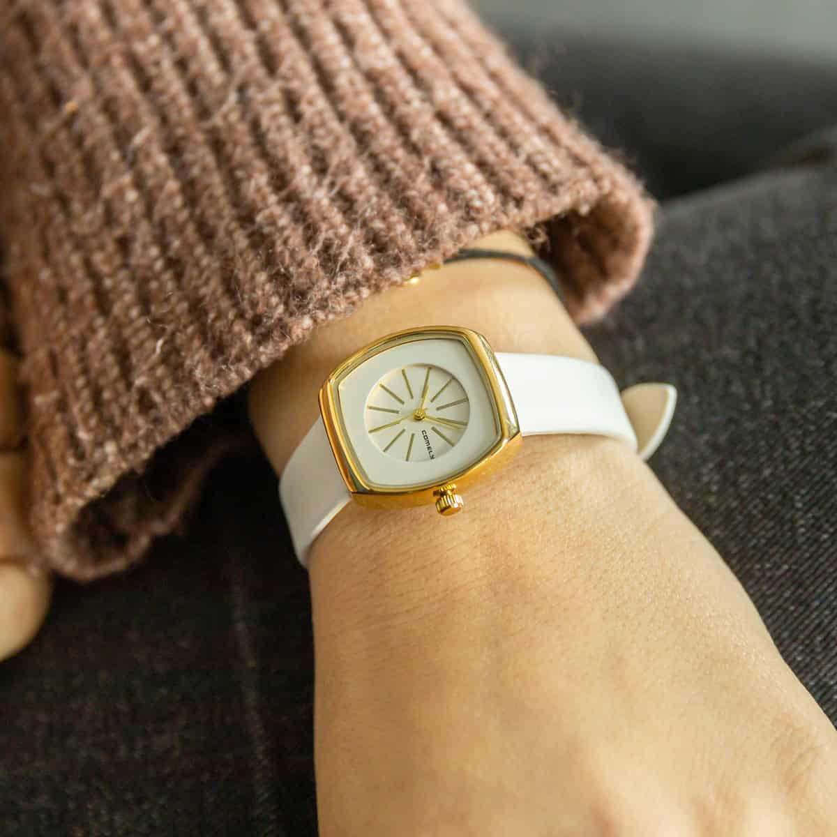 Cette montre femme est livrée avec pochette cadeau – Montre Femme Bracelet Cuir Synthétique – Boitier : Métal – Dimensions cadran : 26x26mm – Verre minéral – Mouvement : PC21 (pile fournie) Japonais – Longueur totale de la Montre : 20cm – Le bracelet s’adapte à toutes les tailles de poignet – Etanche : non – Garantie légale de conformité et vices cachés de 2 ans