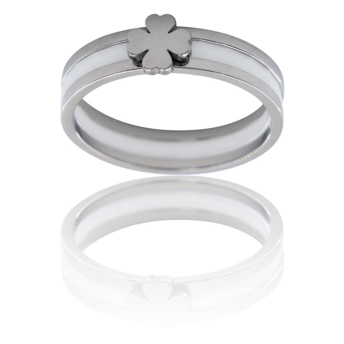 – La légende veut que celle qui porte un trêfle à quatre feuille bénéficie d’une chance hors du commun. C’est une légende, pas un engagement commercial :). Cette bague a été réalisée avec beaucoup d’attention. En son centre vous trouverez une très belle pièce en céramique biseautée et incrustée dans l’acier de la monture de cette bague. C’est une très belle bague femme raffinée et délicate. Faire le choix de cette bague femme c’est choisir un accessoire à l’effet luxe