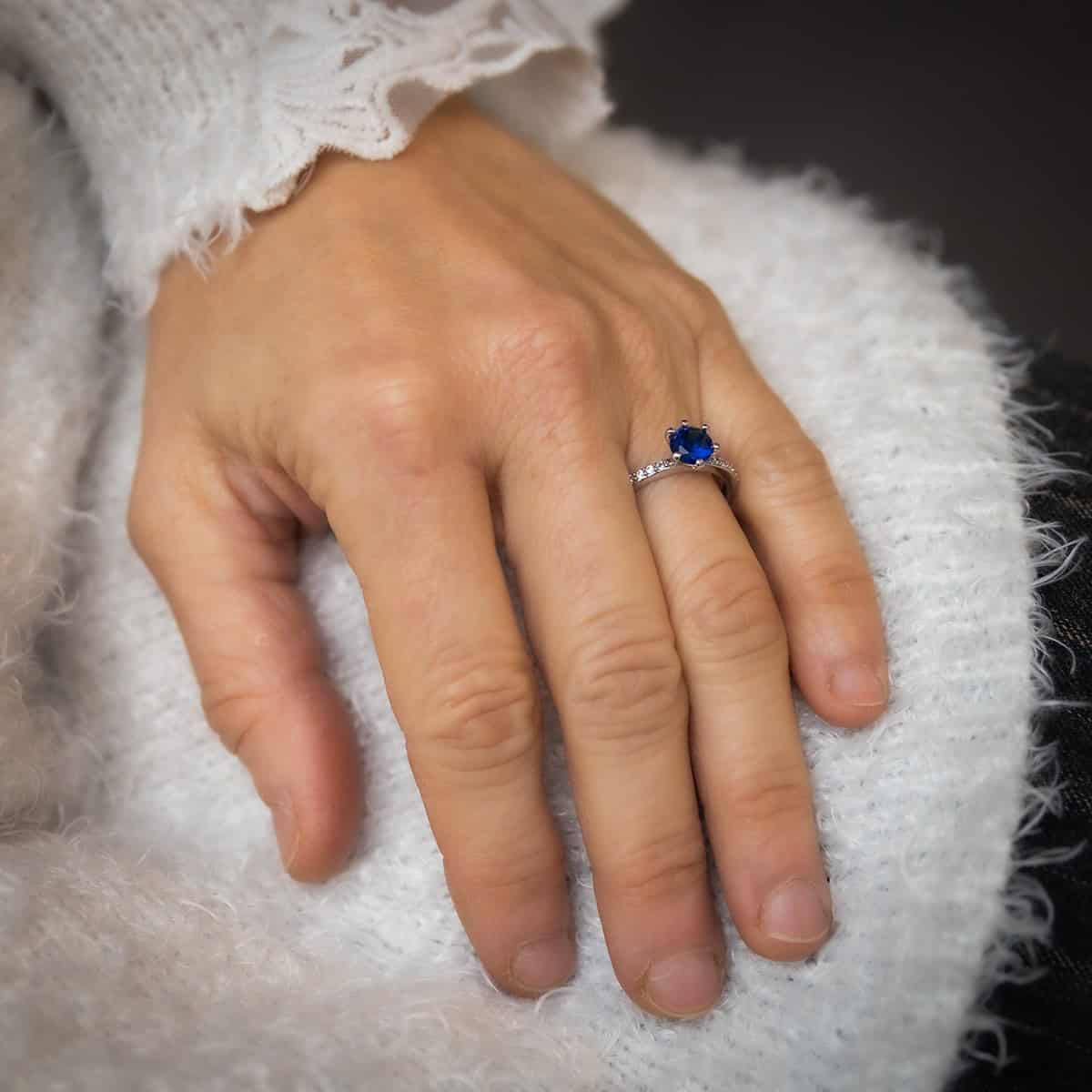 – Un sublime oxyde de zirconium bleu orne cette bague – Cette bague est le cadeau pour faire plaisir ou vous faire plaisir. Tout en rhodium, elle met en valeur un délicat strass en Oxyde de Zirconium bleu ainsi d’autres plus petits strass blanc qui lui donnent un éclat unique