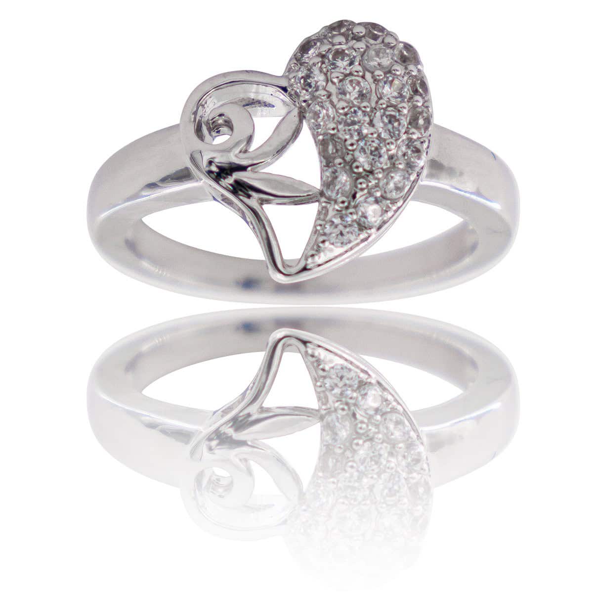 – Très belle bague avec des Oxydes de Zirconium – Un joli coeur design en deux partie orne cette bague qui est une véritable déclaration. Tout en rhodium, elle offre de nombreux petits strass en Oxyde de Zirconium sur un coté du coeur, ‘autre étant ajouré pour un effet des plus élégant
