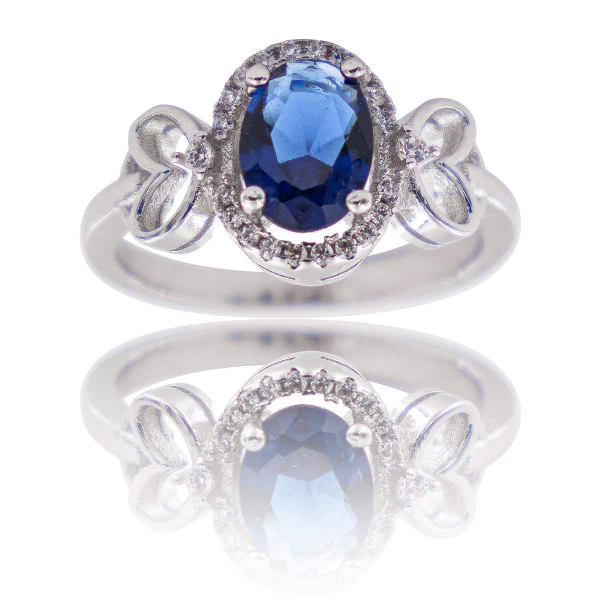 – Cette bague pour femme est classique et somptueuse à la fois. En rhodium, elle bénéficie de finitions incroyables à ce prix. Elle est ornée d’un magnifique Oxyde de Zirconium bleu et d’autres plus petits. Cette pierre de synthèse brille de mille éclats. De jolis petits coeurs sont disposés de chaque côté de la bague