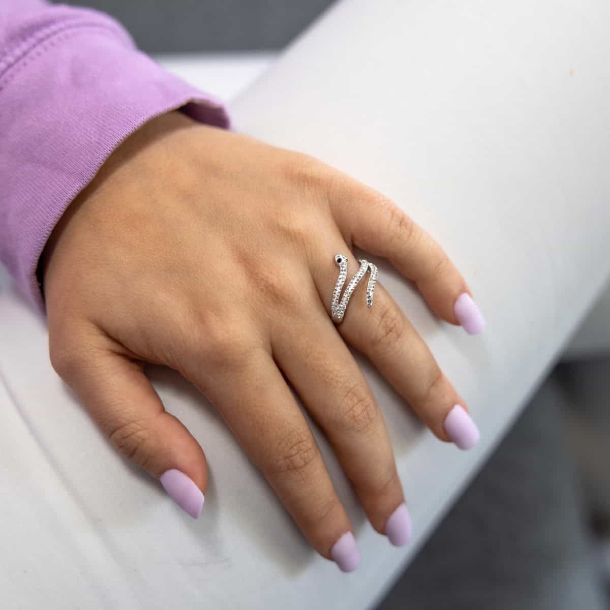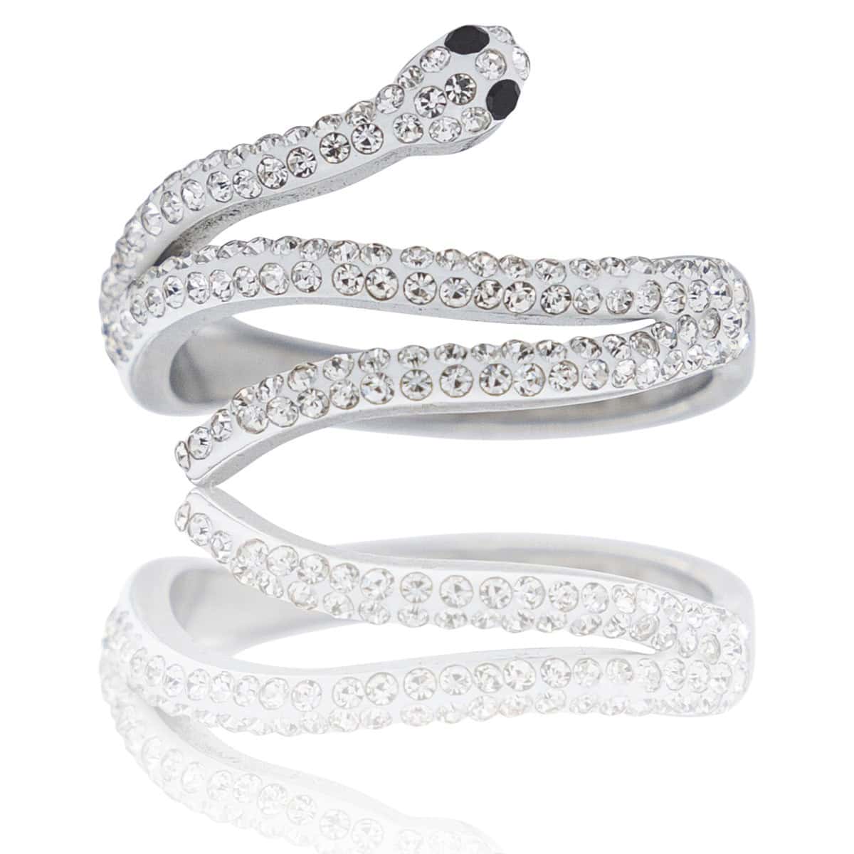 – Voilà une belle bague incroyablement originale ! Dessinée en forme de serpent, c’est une bague femme qui ne manquera pas de faire des jalouses autour de vous. Cette bague femme est ornée de très jolis strass en Oxyde de Zirconium blanc tout le long du corps du serpent