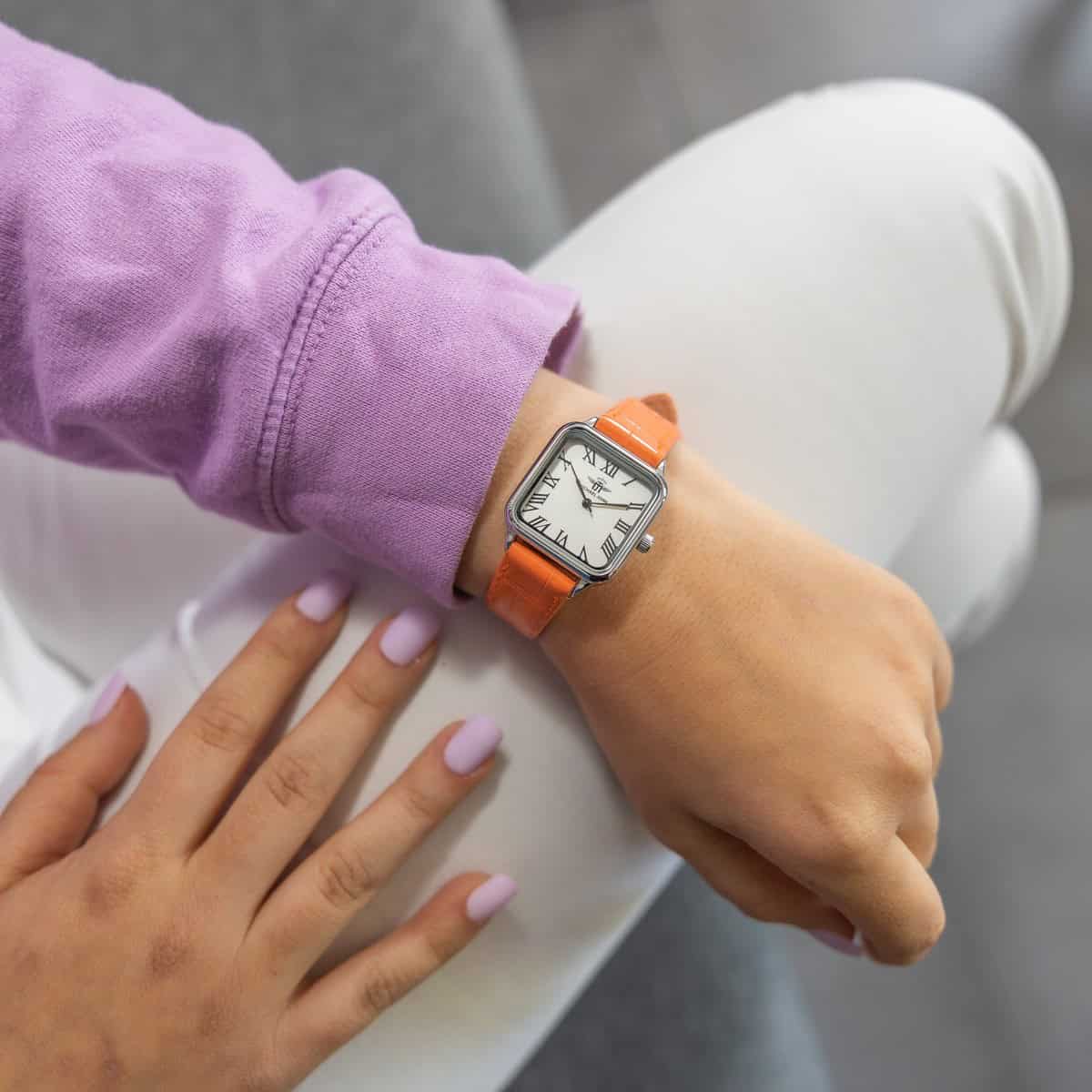 – Cette montre femme livrée avec coffret est un éloge à la belle simplicité. Voilà une montre femme qui sait avoir du style sans prétention. Elle est idéale pour une utilisation quotidienne grace à son design passe-partout. Son cadran est équipé d’indexes en chiffres romains et de très belles aiguilles. Ces éléments sont de couleur noir pour se détacher visuellement du fond blanc du cadran. De cette manière vous lisez l’heure en une fraction de seconde en toute discrétion. Son bracelet surpiqué d’une très belle couture est très agréable à porter, il est très souple.