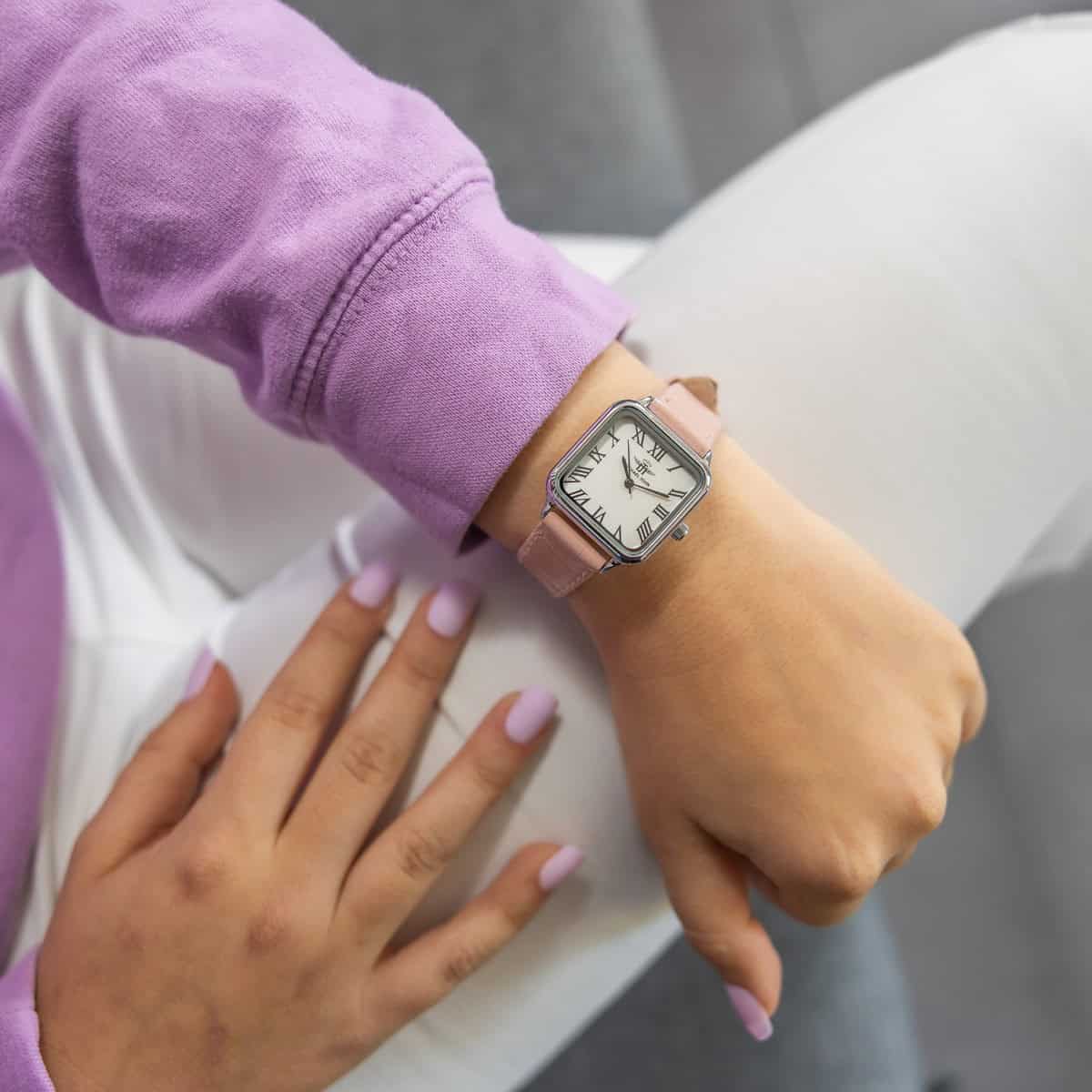 – Cette montre femme livrée avec coffret est un éloge à la belle simplicité. Voilà une montre femme qui sait avoir du style sans prétention. Elle est idéale pour une utilisation quotidienne grace à son design passe-partout. Son cadran est équipé d’indexes en chiffres romains et de très belles aiguilles. Ces éléments sont de couleur noir pour se détacher visuellement du fond blanc du cadran. De cette manière vous lisez l’heure en une fraction de seconde en toute discrétion. Son bracelet surpiqué d’une très belle couture est très agréable à porter, il est très souple.