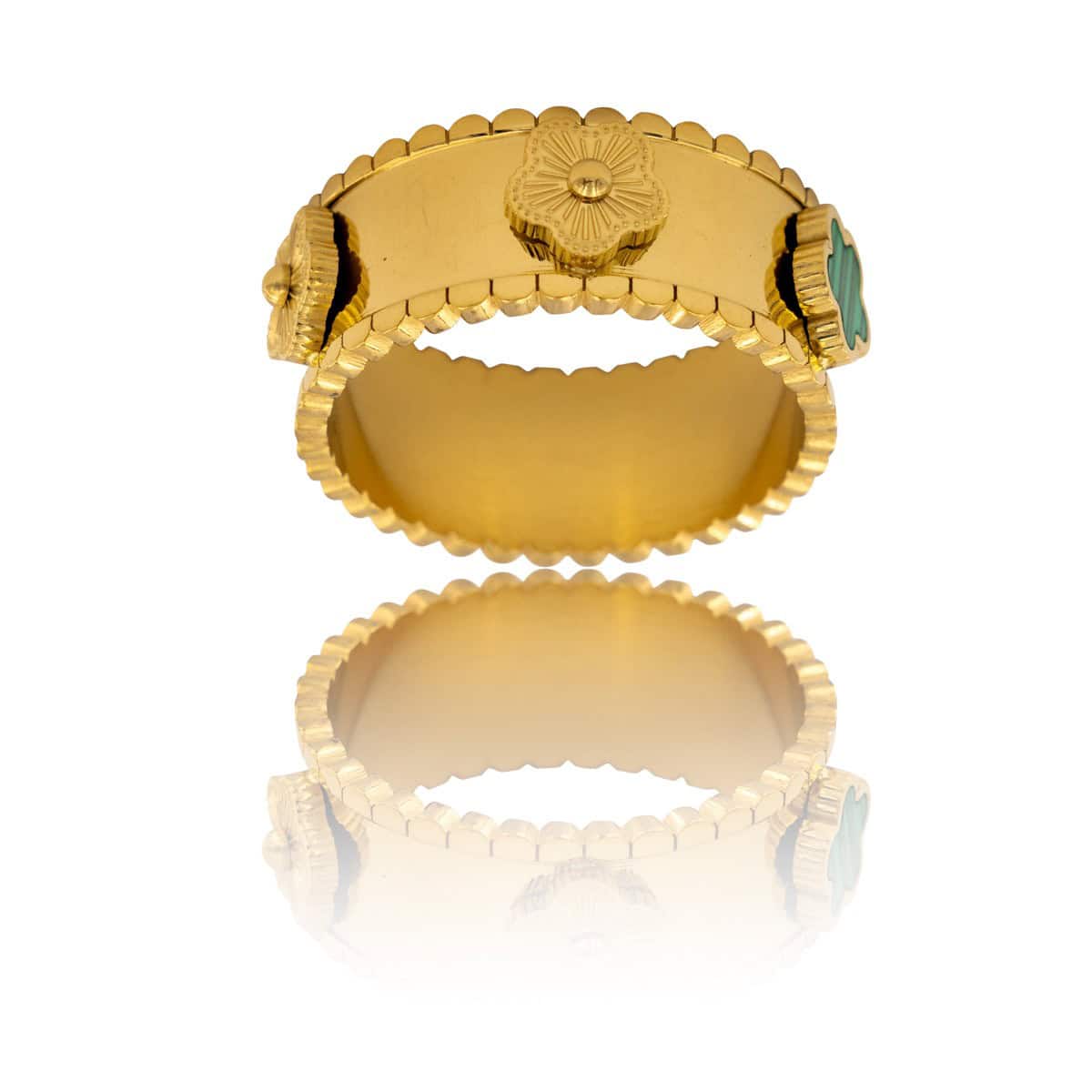 Délicate Bague Femme Métal Fleur Vert