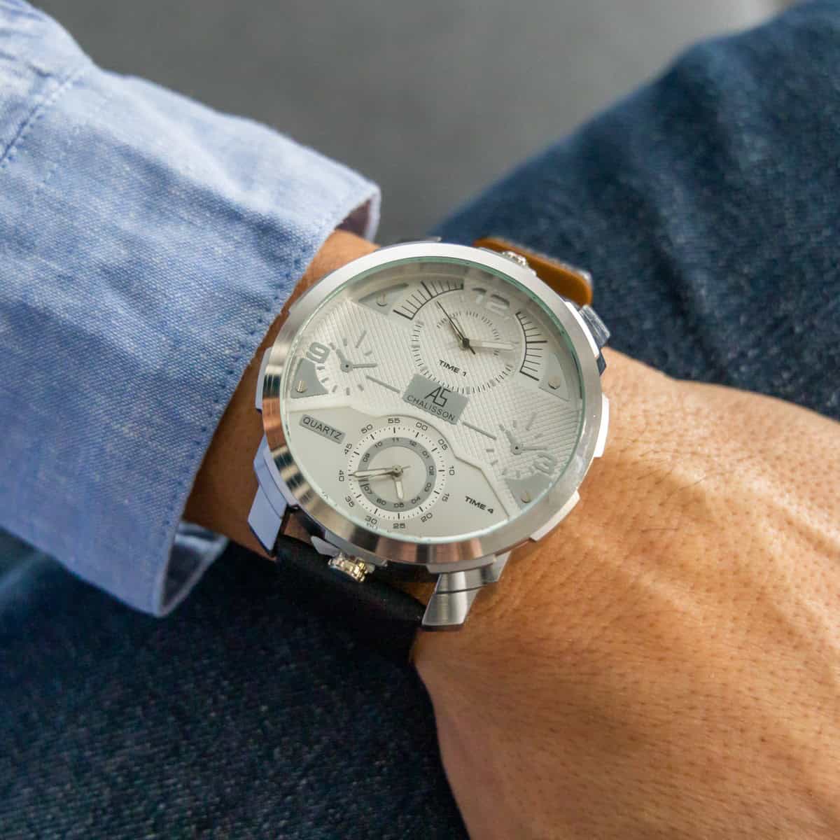 – Cadran : métal XL orné de trois cadrans factices pour un effet chrono
