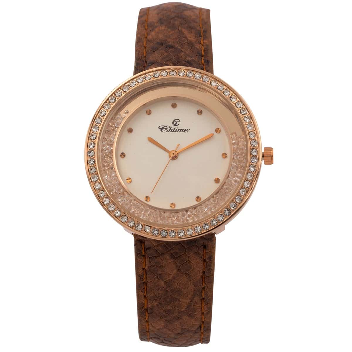 Montre Femme avec Strass Marron CHTIME