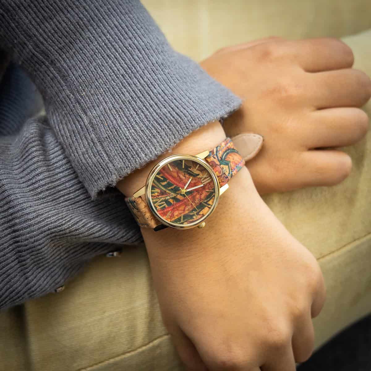 Cette montre femme est livrée avec pochette cadeau – Montre Femme Bracelet Cuir Synthétique effet liège – Boitier : Métal – Dimensions cadran : 35x35mm – Verre minéral – Mouvement : PC21 (pile fournie) Japonais – Longueur totale de la Montre : 21cm – Le bracelet s’adapte à toutes les tailles de poignet – Etanche : non – Garantie légale de conformité et vices cachés de 2 ans