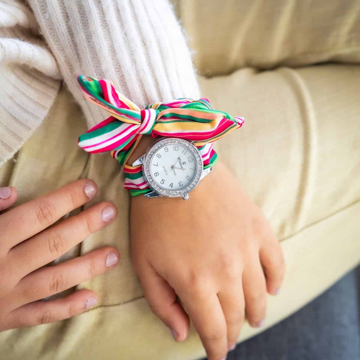 Cette montre femme est livrée avec pochette cadeau – Montre Femme Bracelet Tissu Foulard – Boitier : métal – Dimensions cadran : 40x40mm – Verre minéral – Mouvement : PC21 (pile fournie) Japonais – Longueur totale de la Montre : 25cm – Le bracelet s’adapte à toutes les tailles de poignet – Etanche : non – Garantie légale de conformité et vices cachés de 2 ans