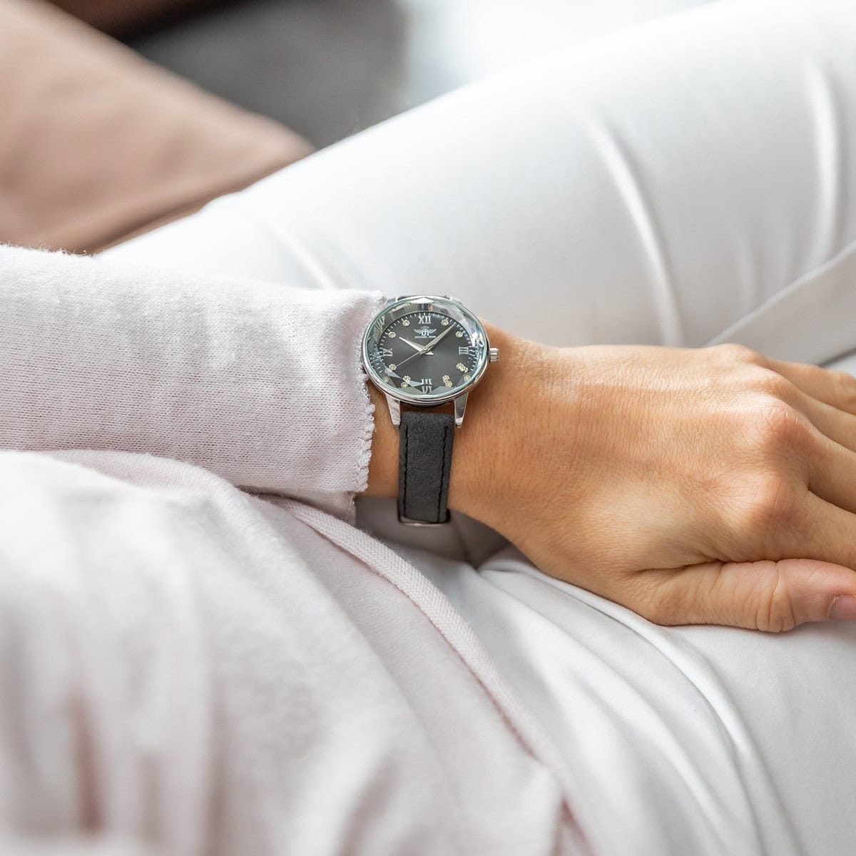 – Quelle belle montre ! Cette montre femme avec son look strassé conviendra tant pour les tenues habillées que les tenues street wear. Son bracelet est fin et très bien travaillé avec son style cuir. Son cadran est orné de huit très jolis petits strass. Ses quatre indexes métallisés se distinguent très facilement du cadran et vous permettent à l’aide de très belles aiguilles une lecture de l’heure agréable