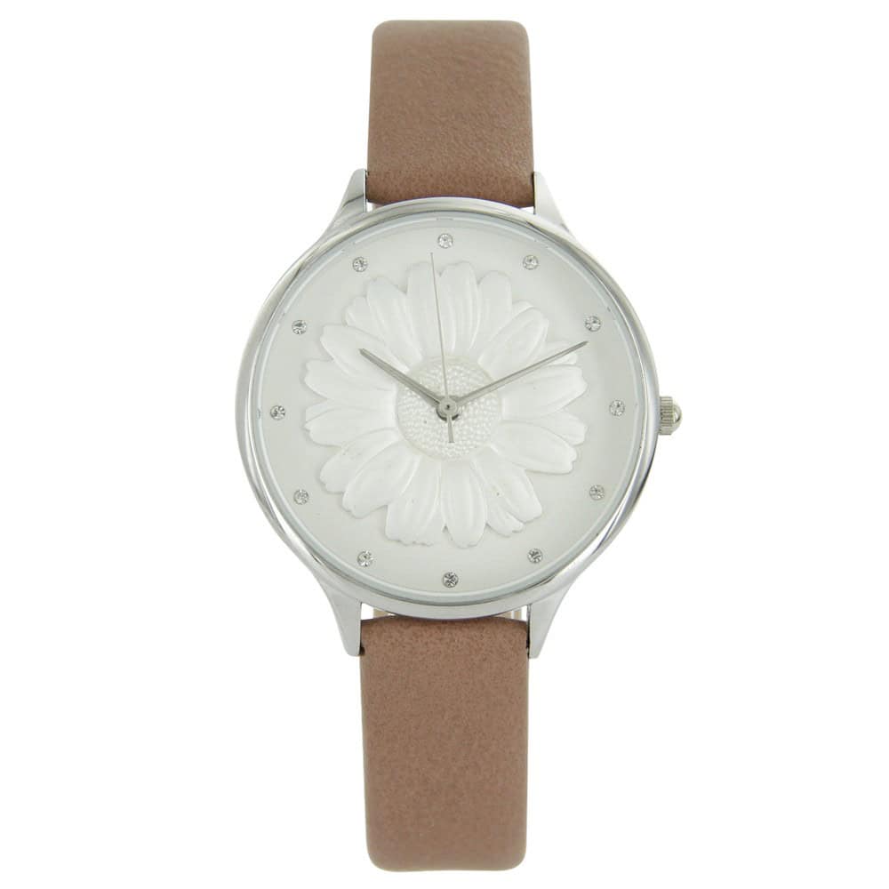 Montre Femme Marron Rosé Relief Fleur Strass MICHAEL JOHN 725