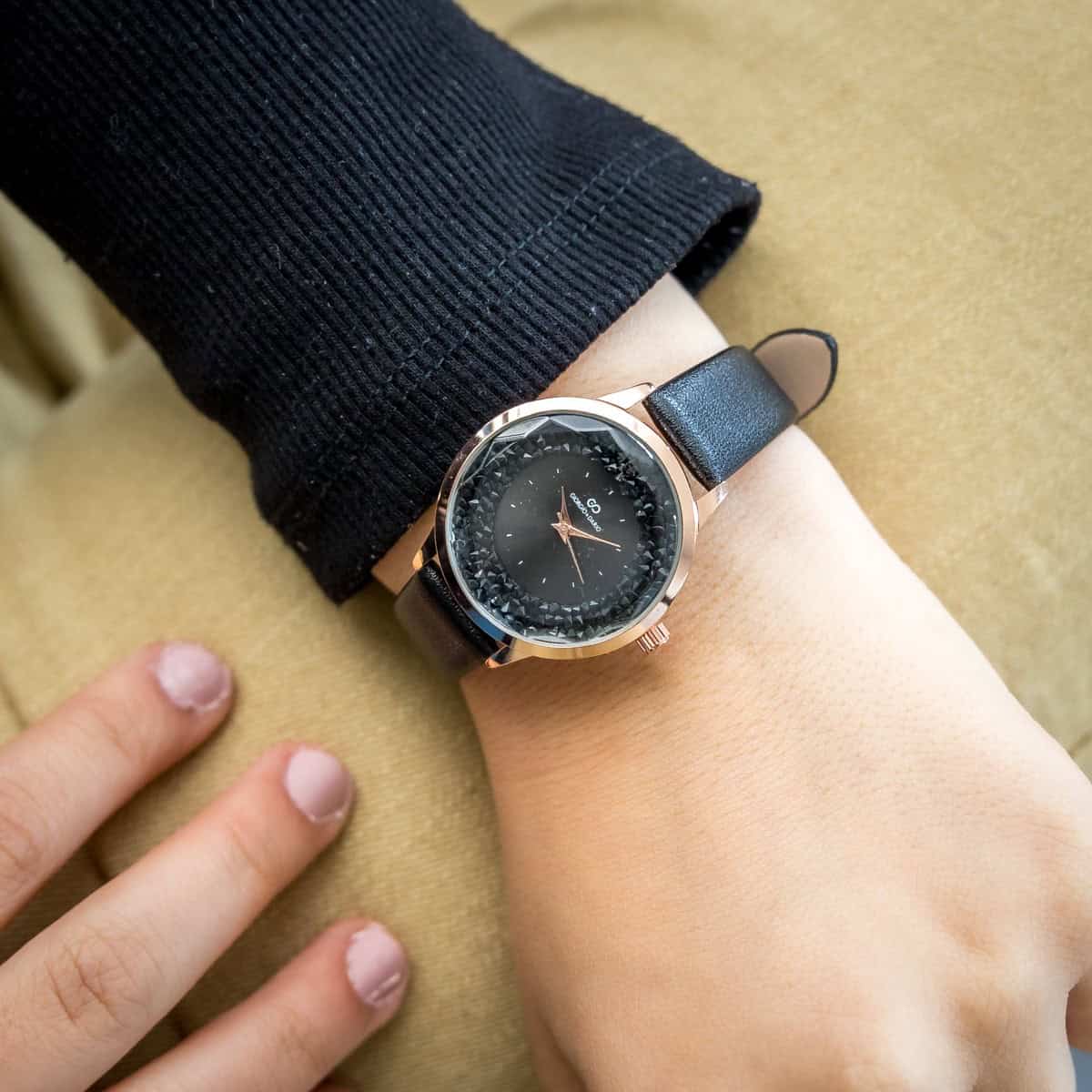 – Cette montre femme livrée avec pochette cadeau est « de toute beauté ». Avec ses couleurs brillantes, elle habillera votre poignet d’une jolie touche raffinée. Son cadran est incrusté de très nombreux strass pour un effet scintillant. Les jolies aiguilles de cette montre femme sont d’une très belle finesse.