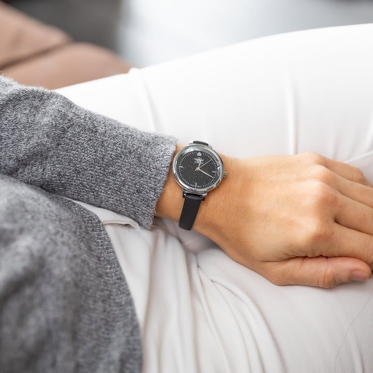 – Vous allez avoir du cœur ! Cette montre femme avec son look très homogène sera votre compagne idéale pour un usage quotidien. Son bracelet est fin et très bien travaillé avec son style cuir. Son cadran orné de discrètes paillettes ajoute lumière et plaisir. Ses 60 indexes dont un en cœur métallisé se distinguent très facilement du cadran et vous permettent à l’aide de très belles aiguilles une lecture de l’heure agréable