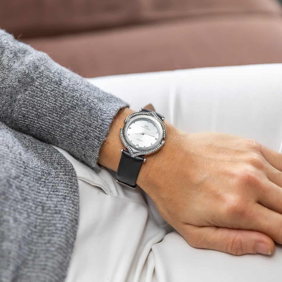 – Effet luxe garanti ! Cette montre femme avec son look très habillé sera votre compagne idéale pour toutes vos soirées chics. Son bracelet fin et très bien travaillé avec son style cuir est très original. Son cadran reprend les codes de l’horlogerie de luxe. Par exemples de très jolis petits strass ornent le cadran. Ces indexes en strass se distinguent très facilement du cadran et vous permettent à l’aide de très belles aiguilles une lecture de l’heure agréable et facile
