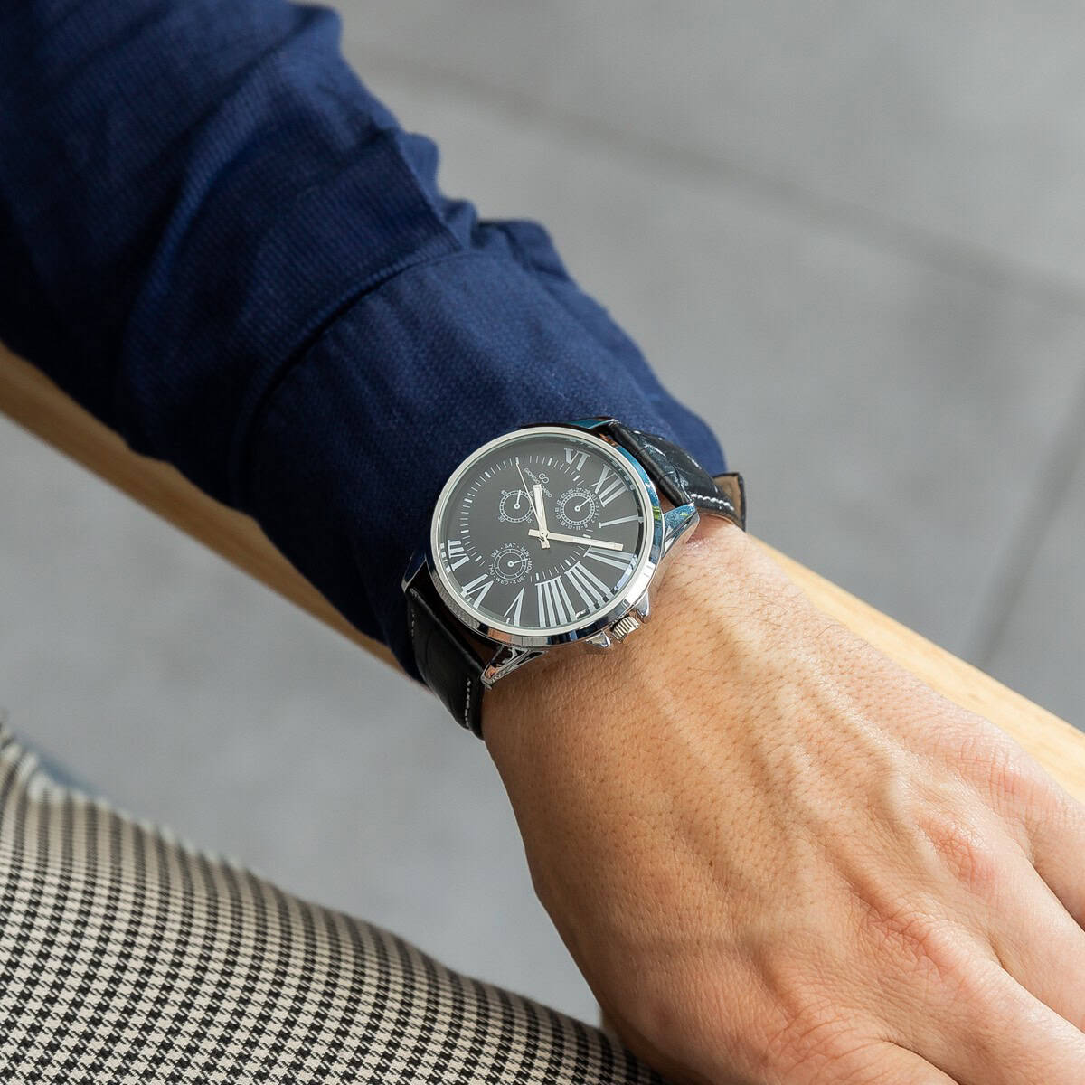 – Cadran : métal orné de trois cadrans factices pour un effet chrono