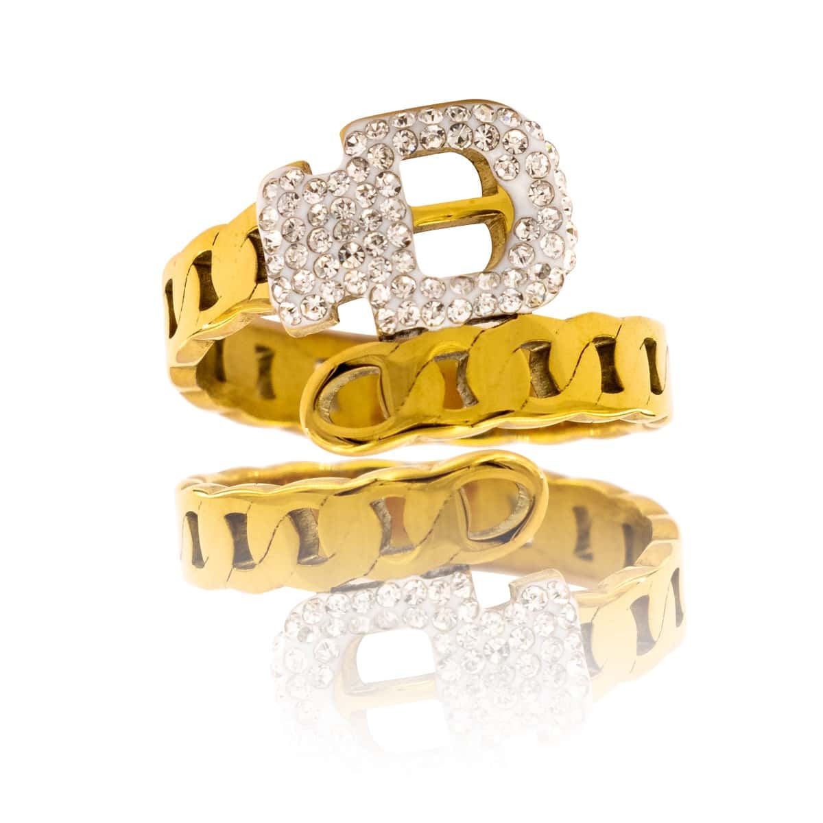 Sublime Bague Femme Ceinture Métal Doré Ornée avec Zirconium