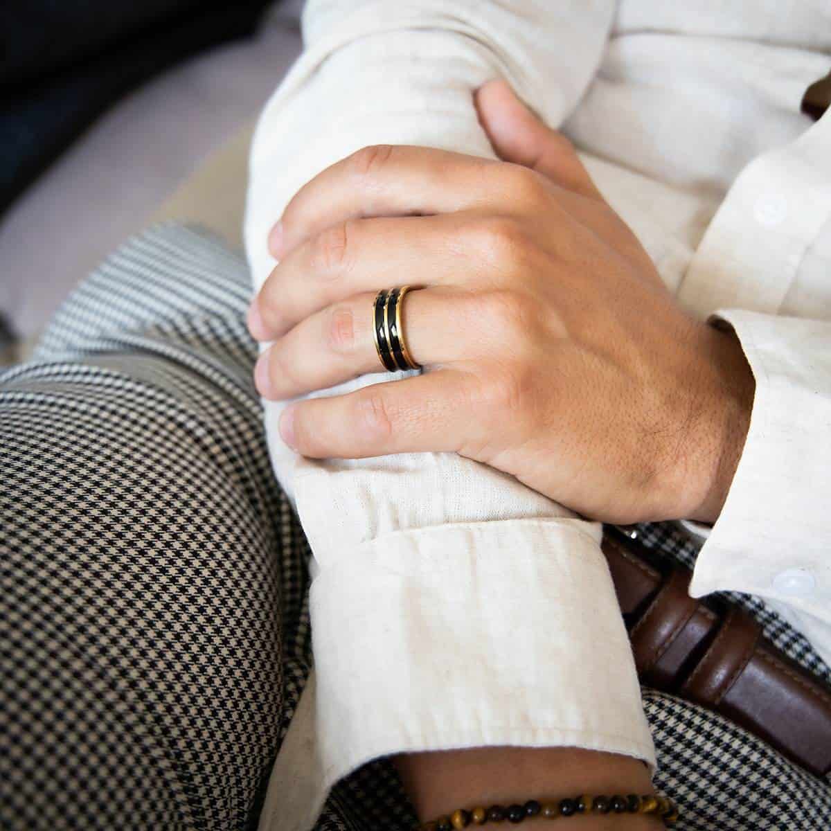 – La bague-anneau pour homme ORA est très belle avec ses contrastes dorés et noirs. C’est une bague homme à un prix incroyable pour ce type de réalisation