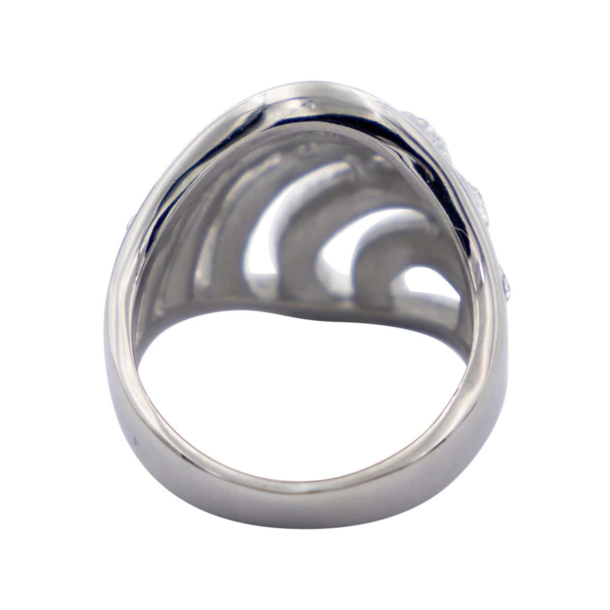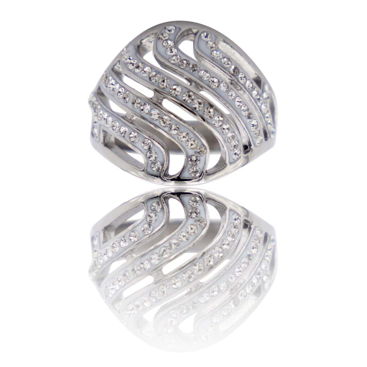 Bague femme avec strass oxydes de zirconium – La taille indiquée est le périmètre (le tour) de votre doigt en millimètre (mm) – Marque Française – Made in RPC – Matière : Métal – Largeur : 18mm – Livrée avec pochette cadeau